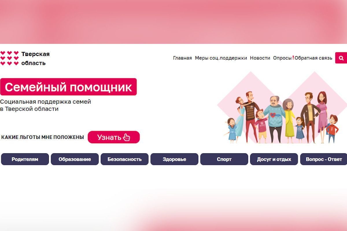 Министерство семейной и демографической политики Тверской области в целях повышения информированности граждан о мерах поддержки семей с детьми в Тверской области, информирует о работе сайта «Семейный помощник Тверской области» https://тверскаясемья.рф